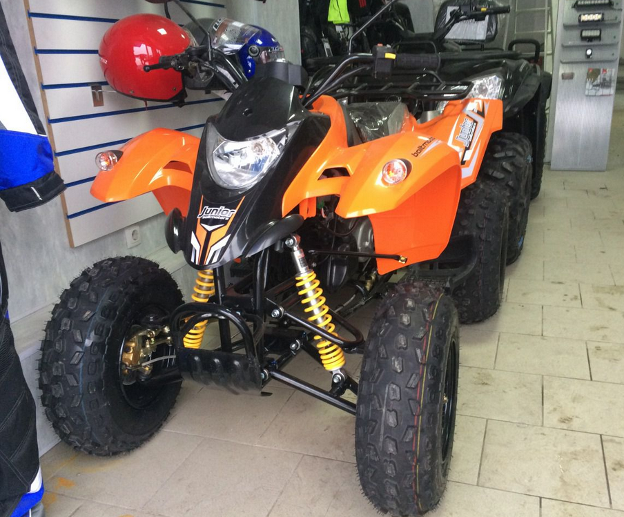 Комплектация Baltmotors Junior оснащена вариаторной коробкой передач, 0.1 литровым двигателем (7 л.с.). Данная модификация обладает задним приводом. Стоимость данного квадроцикла не объявлена.